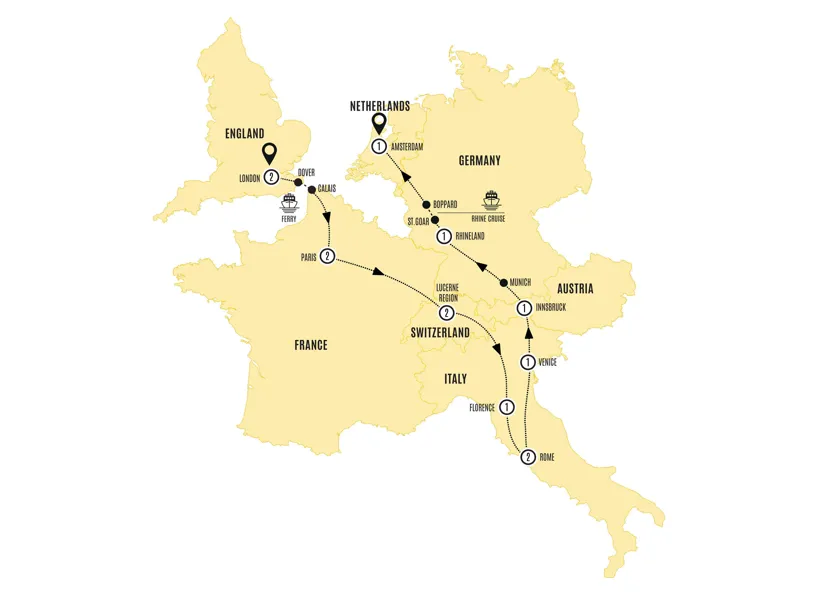Our Multi-Country Europe trips are ideal for travelers who want to see it all. These guided vacations offer a rich blend of cultures, cuisines, and landscapes across borders. All without the stress of planning the logistics. You might begin with the museums of Paris, continue to the canals of Venice, and finish with tapas in Spain, all on one itinerary. Every detail is arranged, from sightseeing to mealtimes, so you can immerse yourself fully in each experience. It's the perfect way to discover new favorites and return home with a passport full of stories.