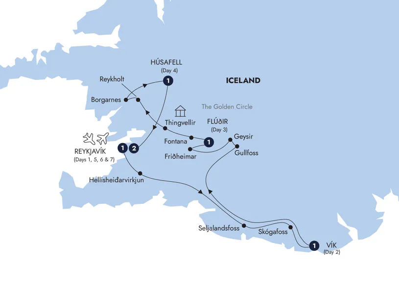 Experience the iconic sights of Iceland as you gasp in awe at the exploding hot springs in Geysir and lose yourself in the Northern Lights dancing overhead in Reykjavik. From the thundering waterfalls of Skógafoss and the majesty of the Hekla volcano, to the allure of the Golden Circle and the earth shaking Mid-Atlantic Ridge, this one-week tour has it all. Uncover Iceland’s volcanic history at the Lava Center en route to Vik, visit a geothermal bakery in Fontana where fresh bread is dug out of the hot ground before your very eyes and hone your horticulture skills at the massive greenhouse tomato farms in Friðheimar. Discover how Iceland was settled at a fascinating exhibit in Borgarnes and conclude your tour with a Local Expert in Old Reykjavik, as they guide you through the capital.